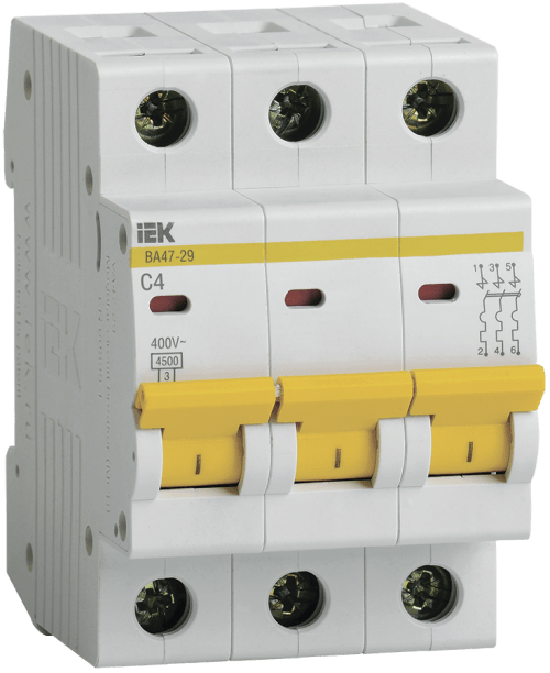 Выключатель автомат С4А, 3Р, 4,5кА ВА47-29 IEK