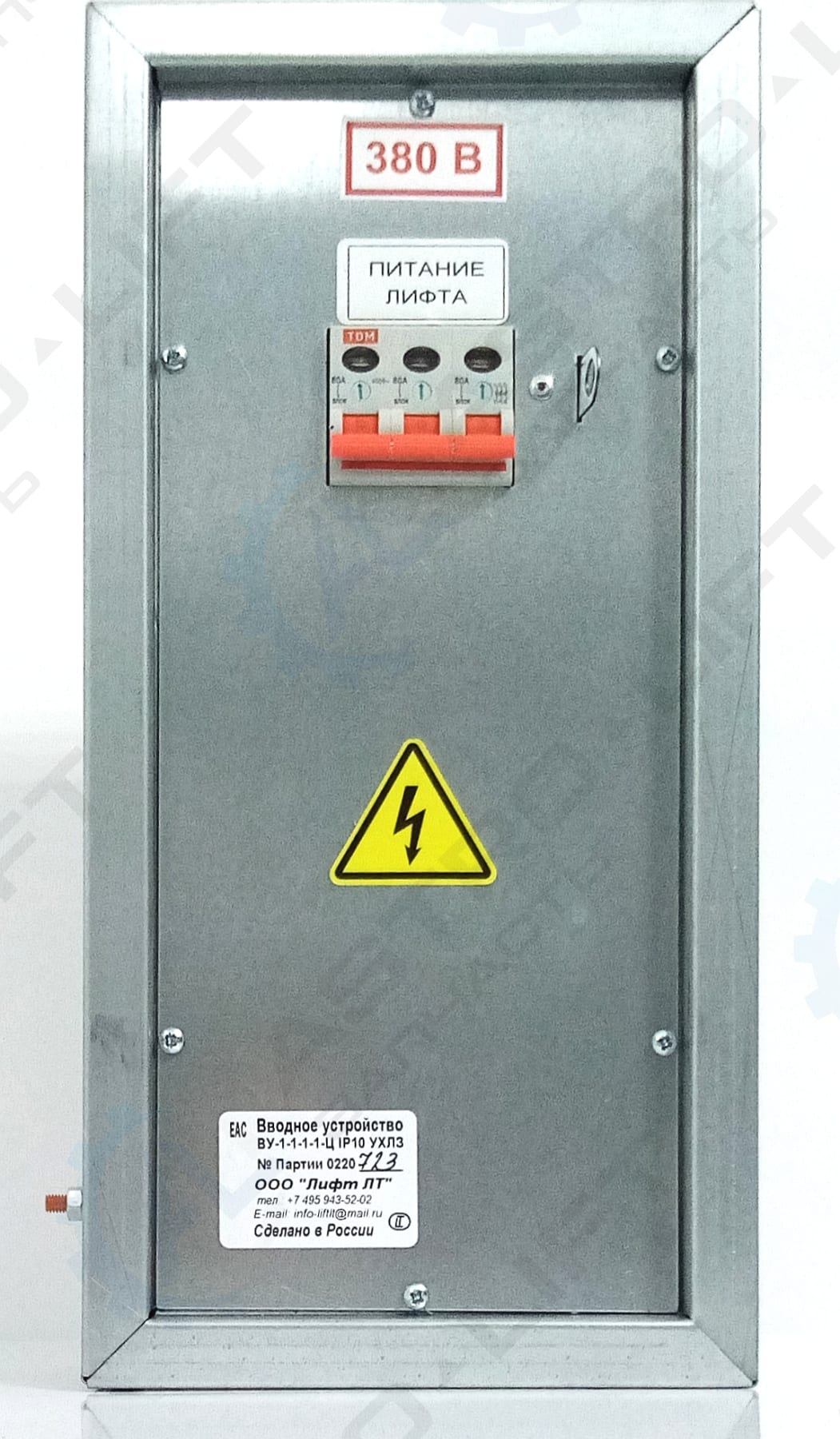 Вводные устройства (главные выключатели, «рубильники») для лифтов, обеспечивающие прием электроэнергии напряжением 0.4 кВ, защиту электрооборудования от перегрузки и токов короткого замыкания, а также защиту сети от индустриальных радиопомех и токов высоких частот, генерируемых нагрузкой привода.